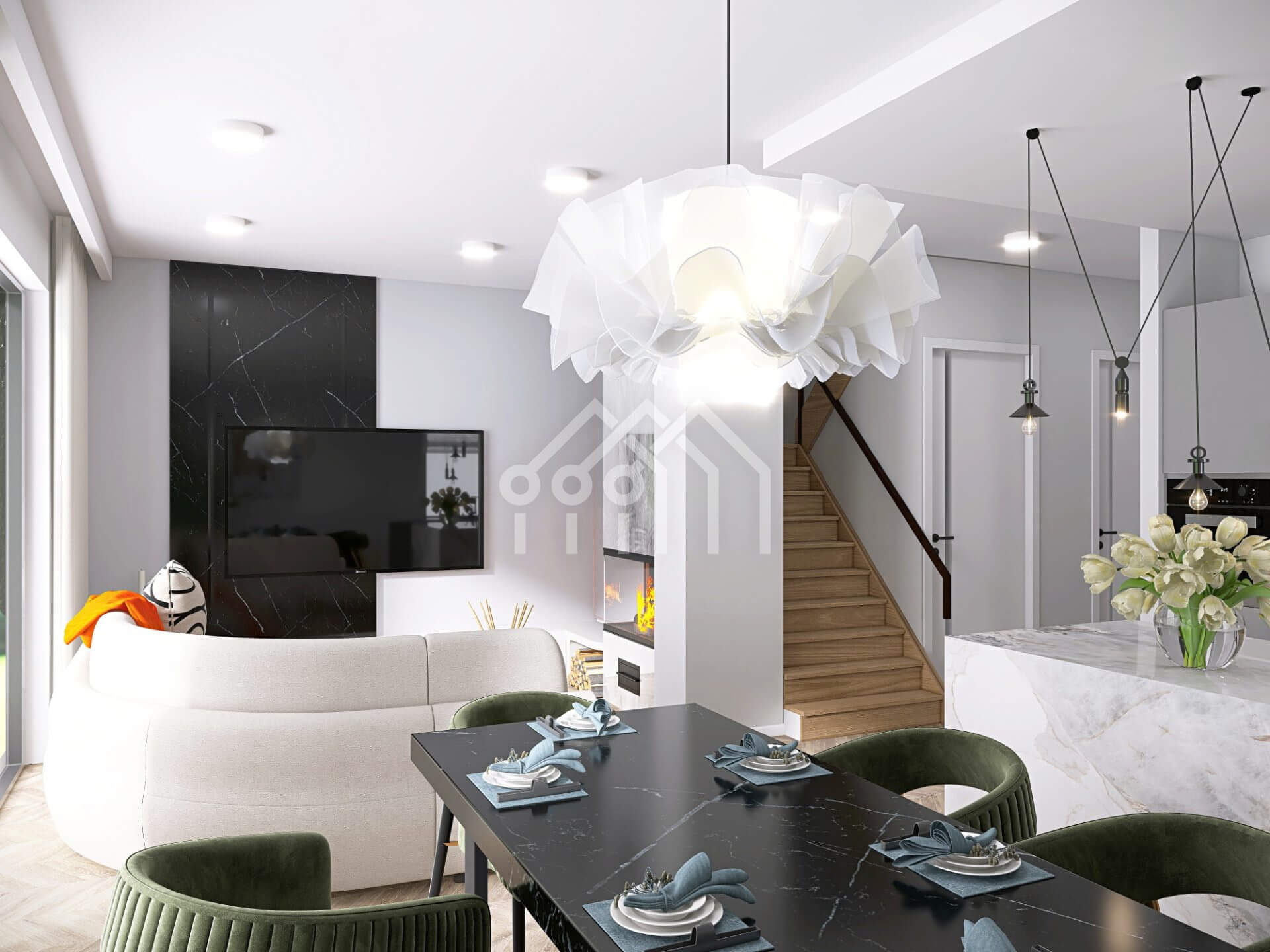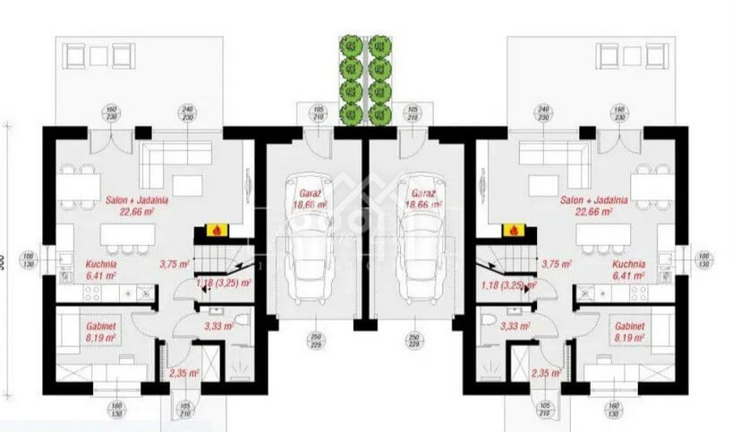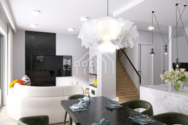Początek budowy domu rozpoczął się w Marcu 2025r. Powierzchnia użytkowa jednej połówki domu to około 120m2 osadzony na pięknej działce o wielkości 725m2,