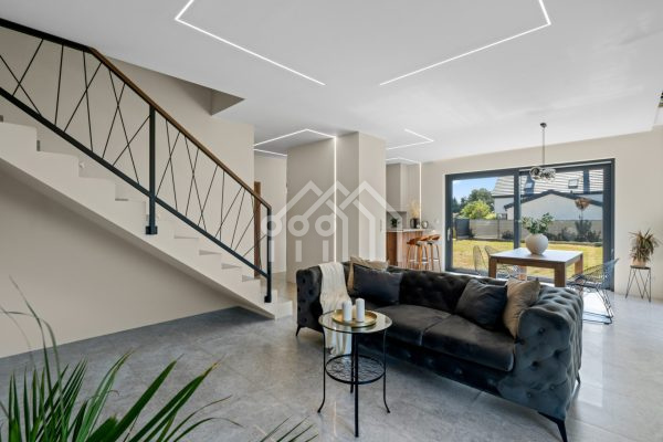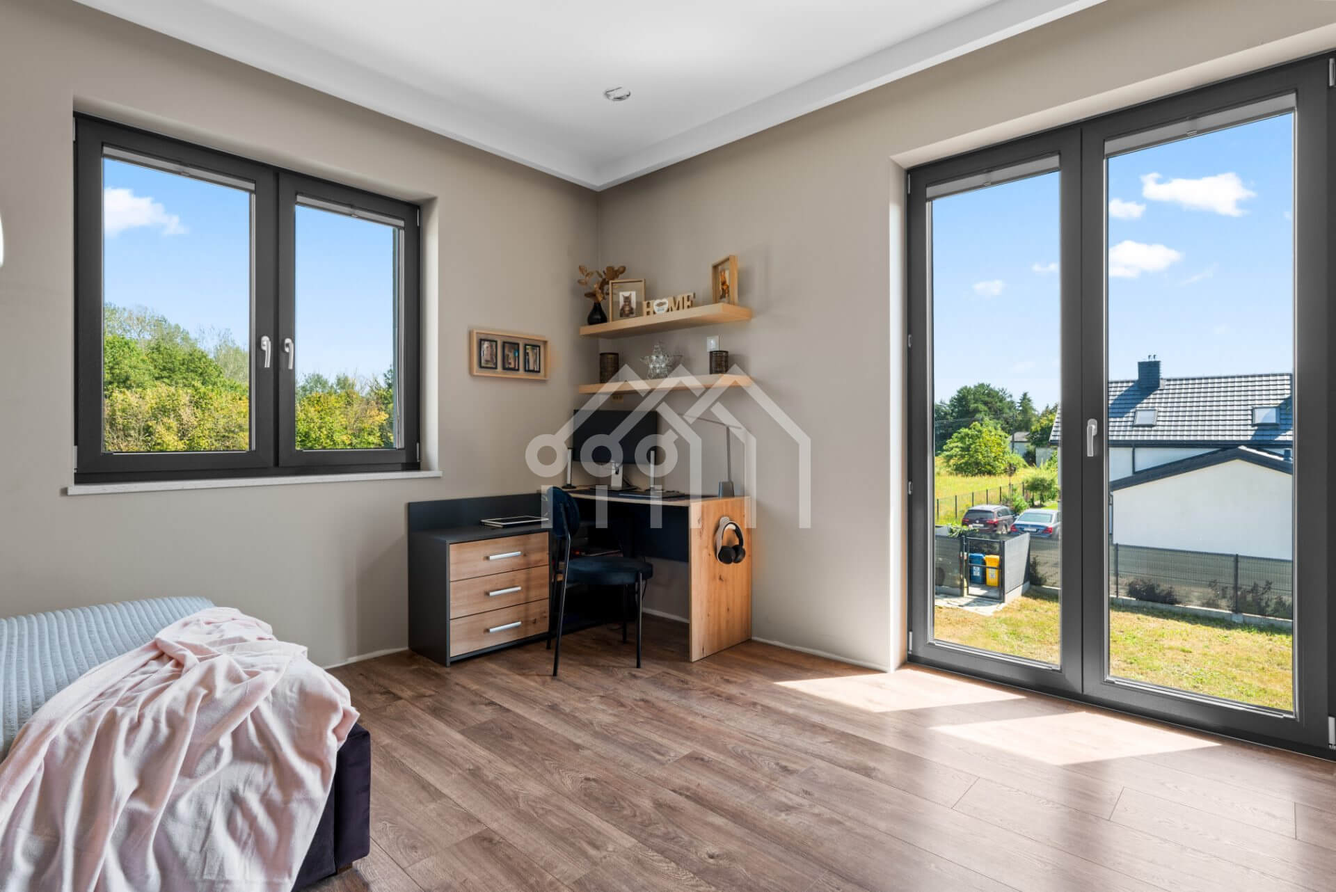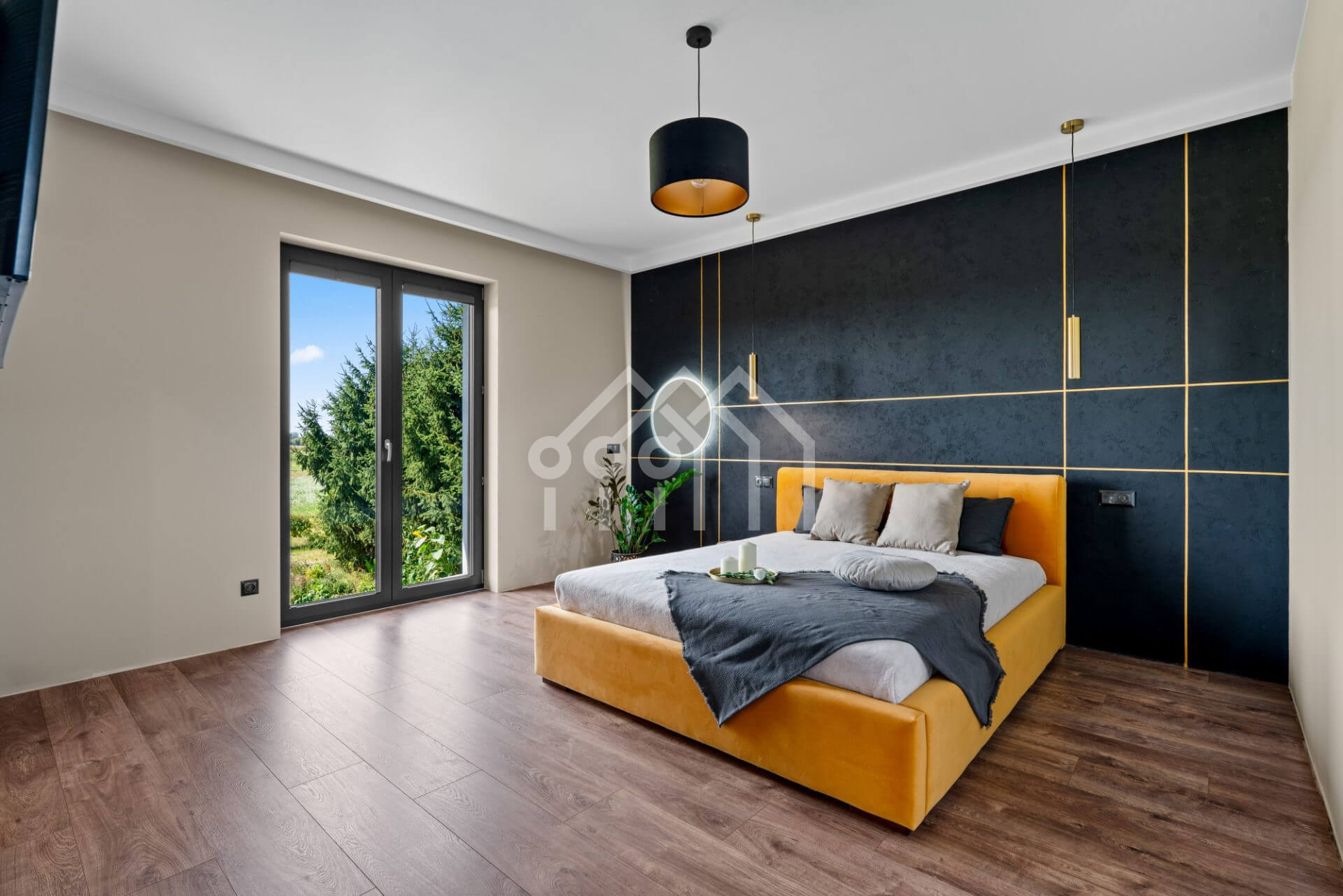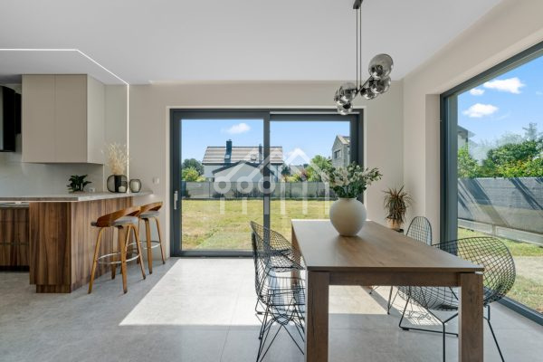 The house has been designed with meticulous attention to detail and finished with top-quality materials. It features underfloor heating throughout (including the garage), a ventilation and heat recovery system (rekuperacja), and pre-installed infrastructure for air conditioning and solar panels. For safety, the property is equipped with modern internal and external alarm systems.