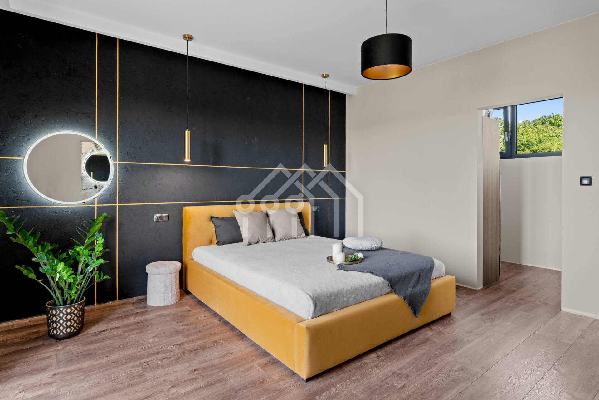 Modern solutions include a 6 kW Daikin heat pump. Floors are finished with high-quality Spanish gres tiles, and the building was constructed in 2023 using 25 cm Porotherm brick, ensuring durability and energy efficiency.