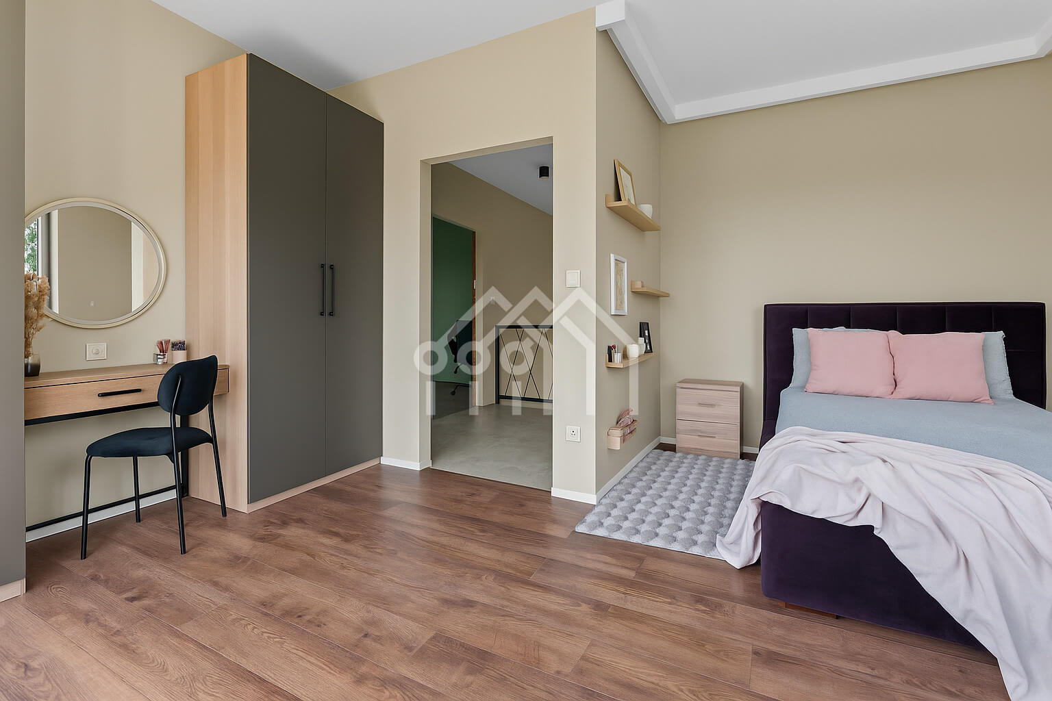 – przestronna sypialnia z widokiem na zieleń, połączona z własną łazienką i garderobą