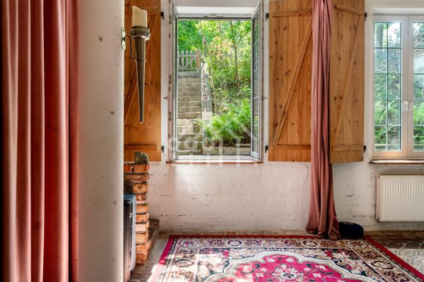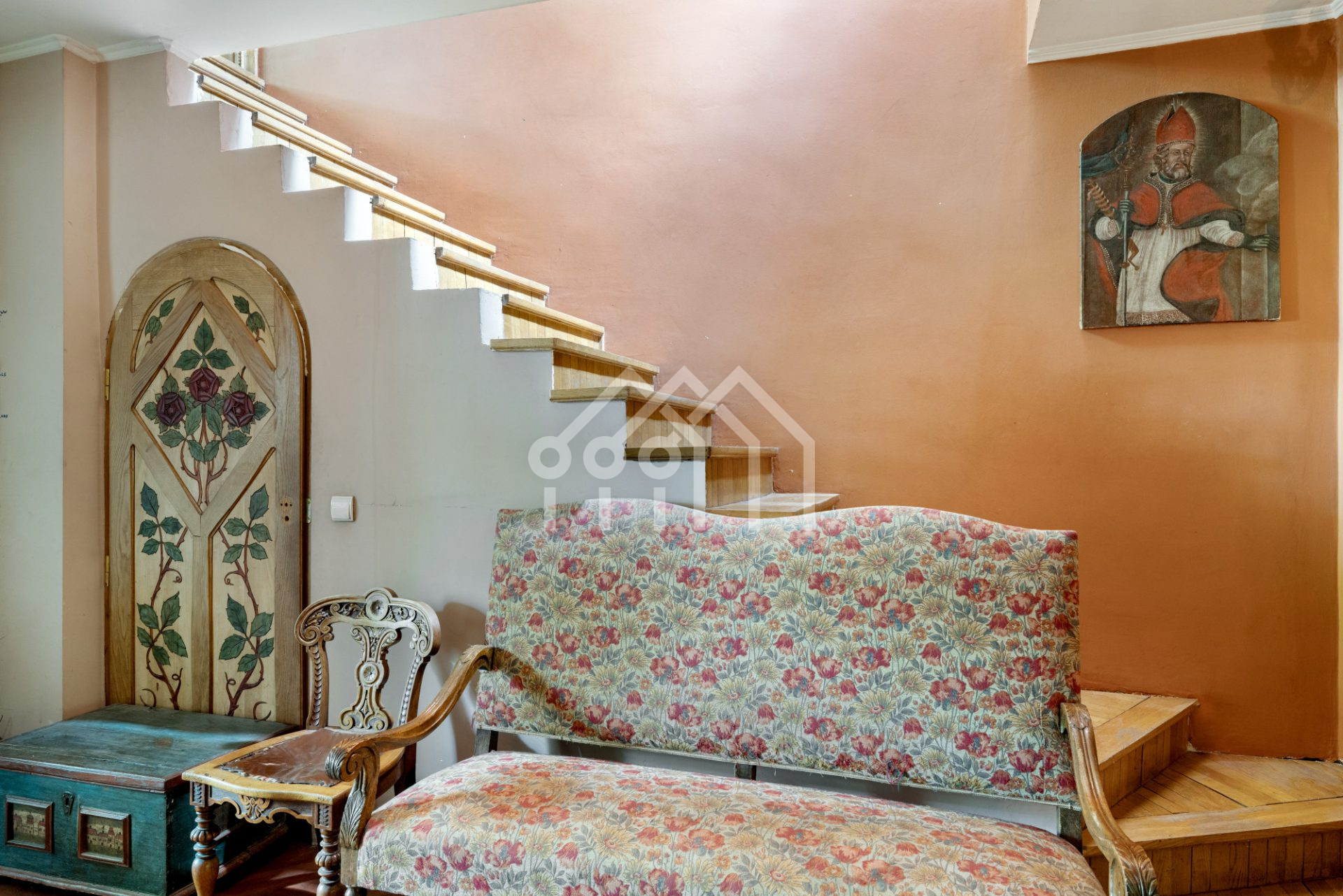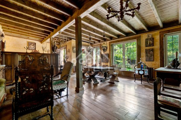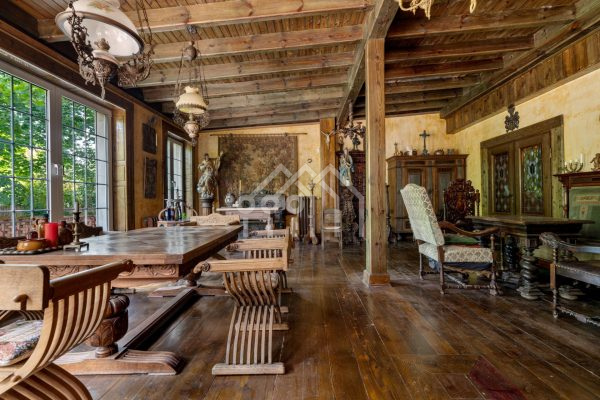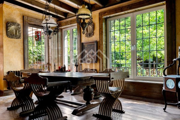 - Parter – składa się z przestronnej otwartej przestrzeni, kuchni, korytarza, łazienki oraz dużego salonu z nietuzinkowym wnętrzem wypełnionym meblami z historią w stylu renesansowej komnaty. Duże okna umożliwiają widok zielony ogród pełen drzew z miejscem do wypoczynku i rekreacji.