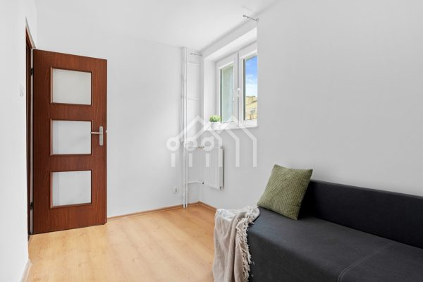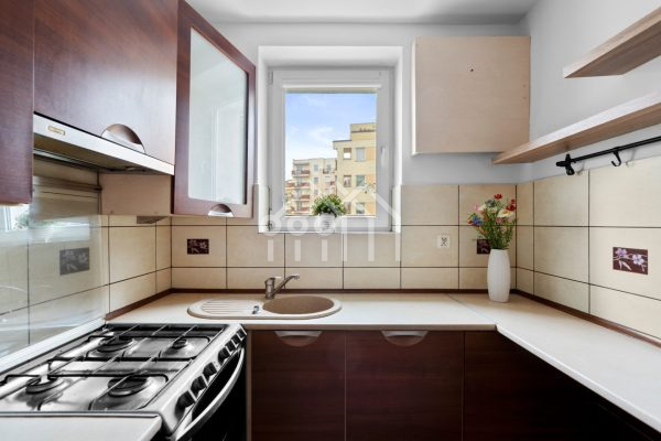 Na podłogach w salonie i sypialni znajdują się panele odporne na zarysowania. Jasna kuchnia, z praktycznymi w utrzymaniu płytkami, została wyposażona w nowoczesną zabudowę AGD (piekarnik, płyta gazowa). W całym mieszkaniu wymieniono okna na plastikowe.