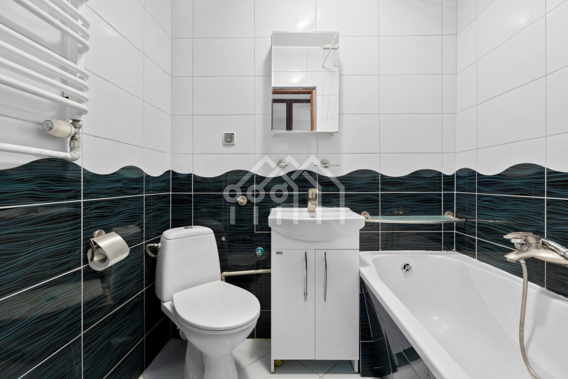- Łazienka z jasnym wnętrzem wyposażona w wannę,
