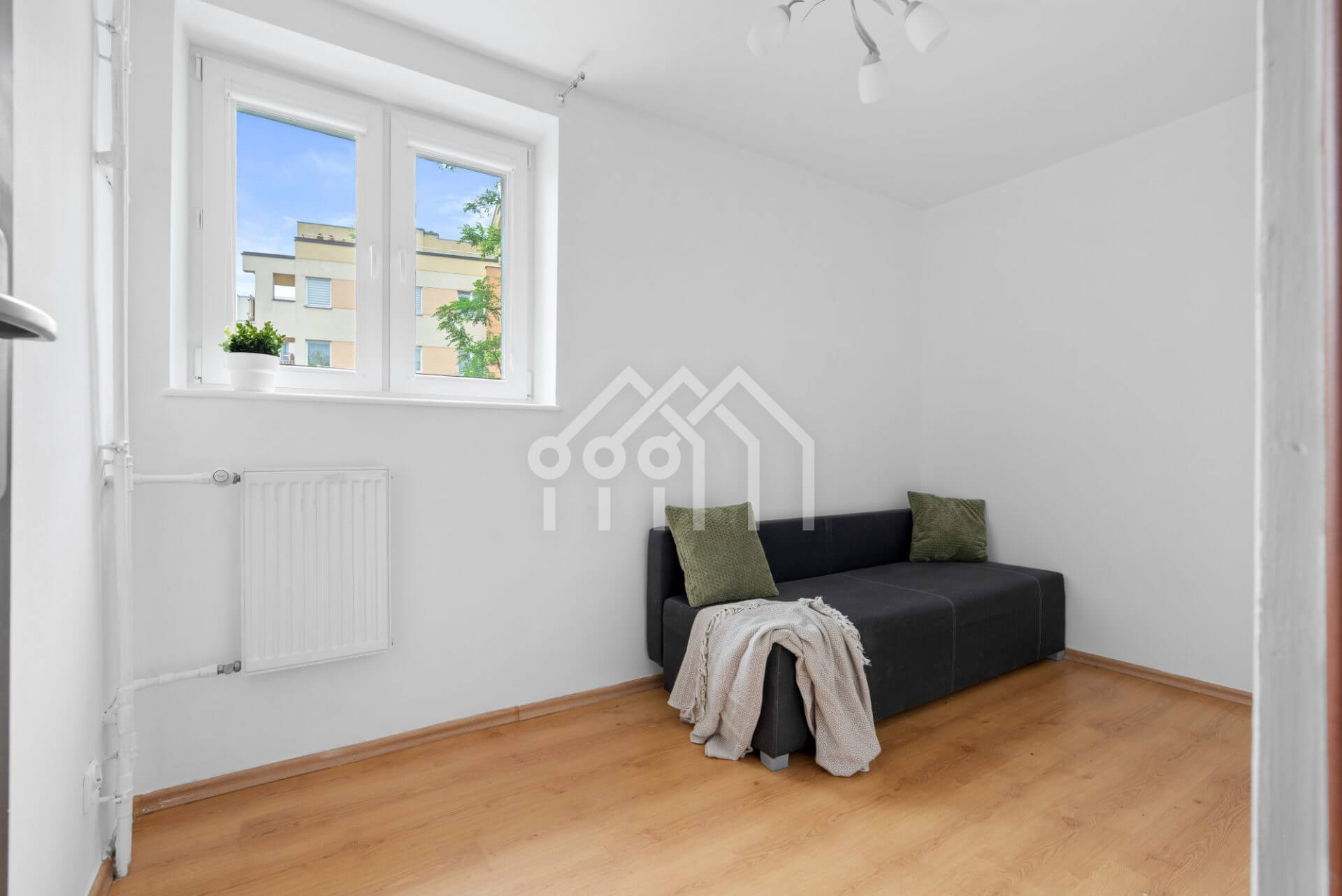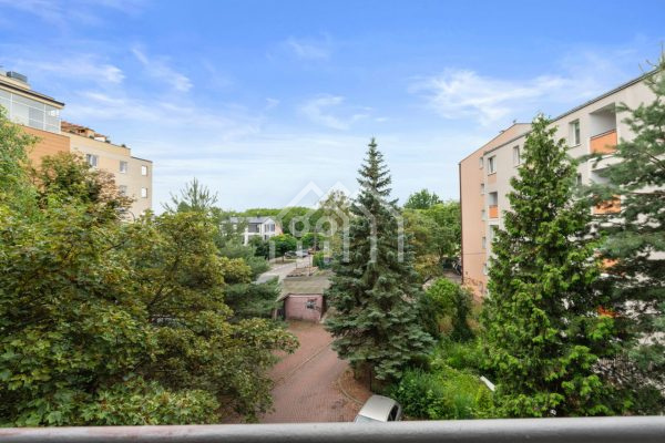 - Salon z wyjściem na balkon, przestronny i dobrze doświetlony, z widokiem na osiedle oraz liczne drzewa.