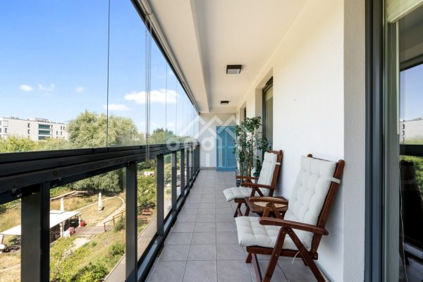 Współczesne, monitorowane i zamknięte osiedle z lokalami handlowo-usługowymi na parterze, położone tuż obok parku Balaton.