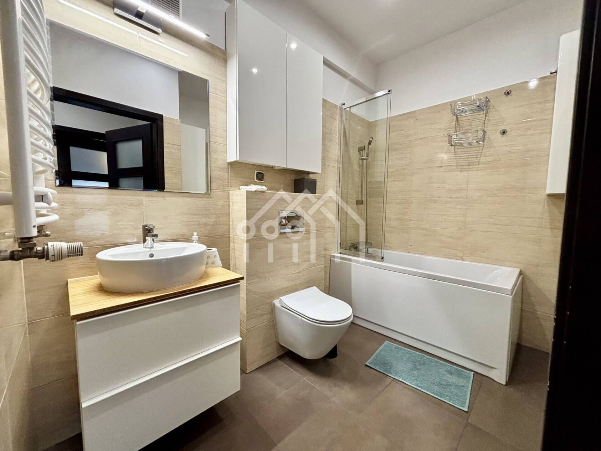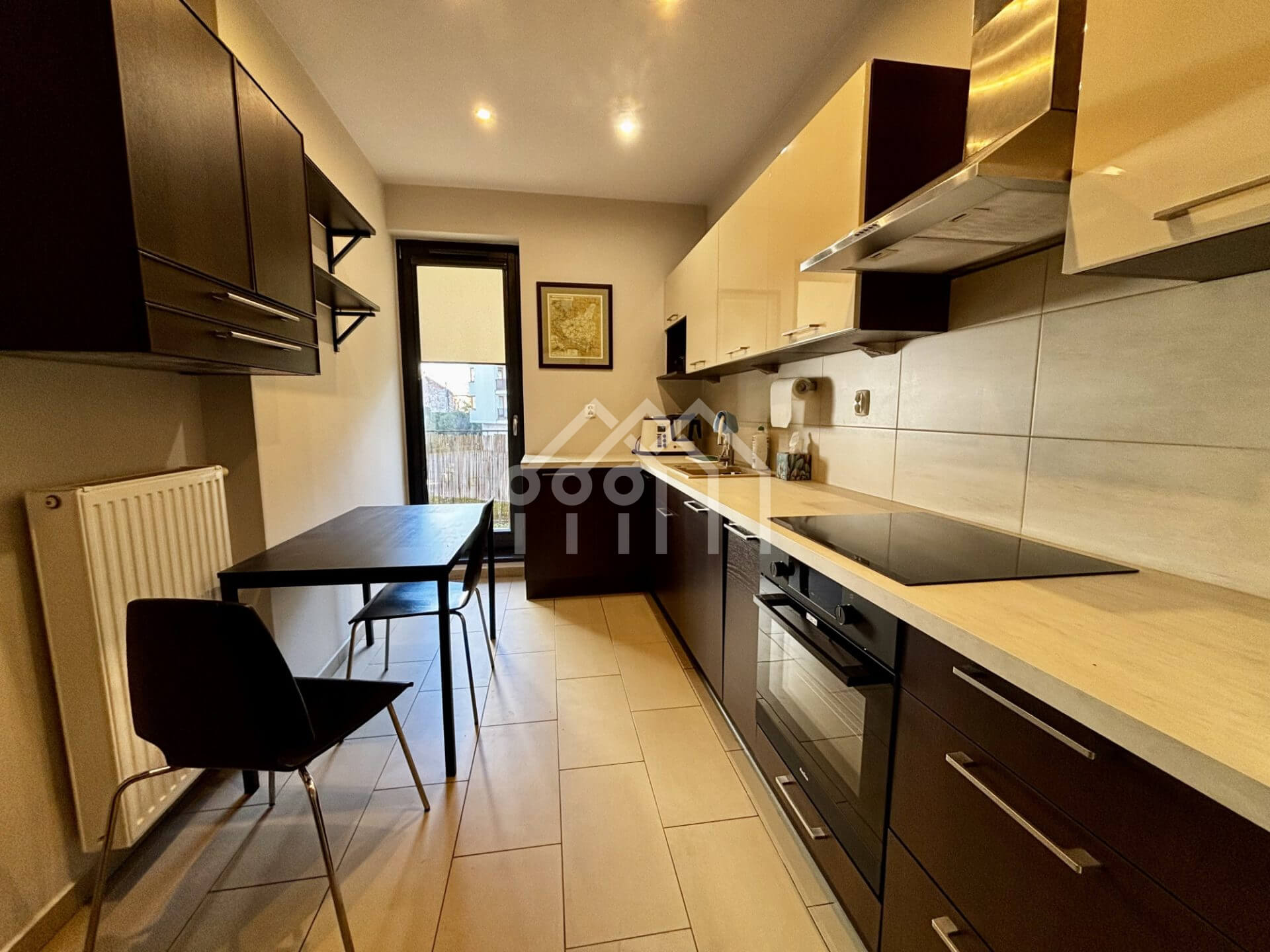 oddzielnej kuchni z pełnym wyposażeniem w sprzęt AGD (piekarnik, płyta, lodówka, zmywarka, okap),przytulnej sypialni z łóżkiem małżeńskim i pojemną szafą,eleganckiej łazienki z wanną i funkcją prysznica, przestronnego przedpokoju z zabudowaną szafą i miejscem do przechowywania.