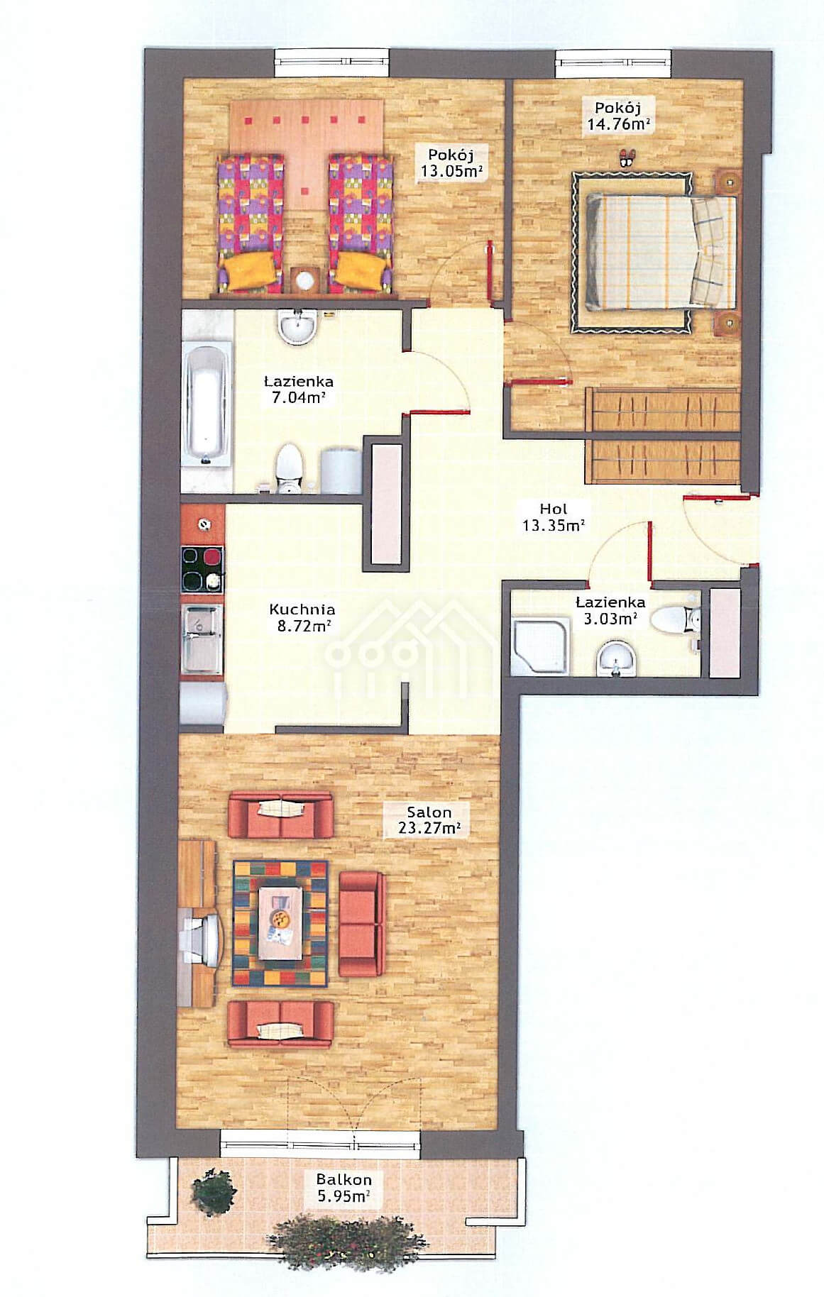 Apartament o łącznej powierzchni 83 m2 składa się z: