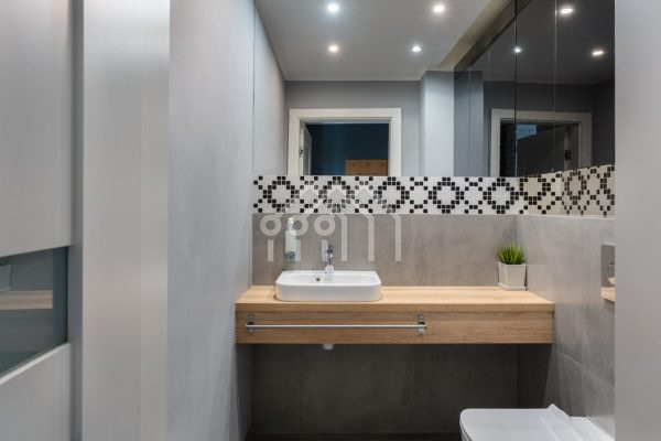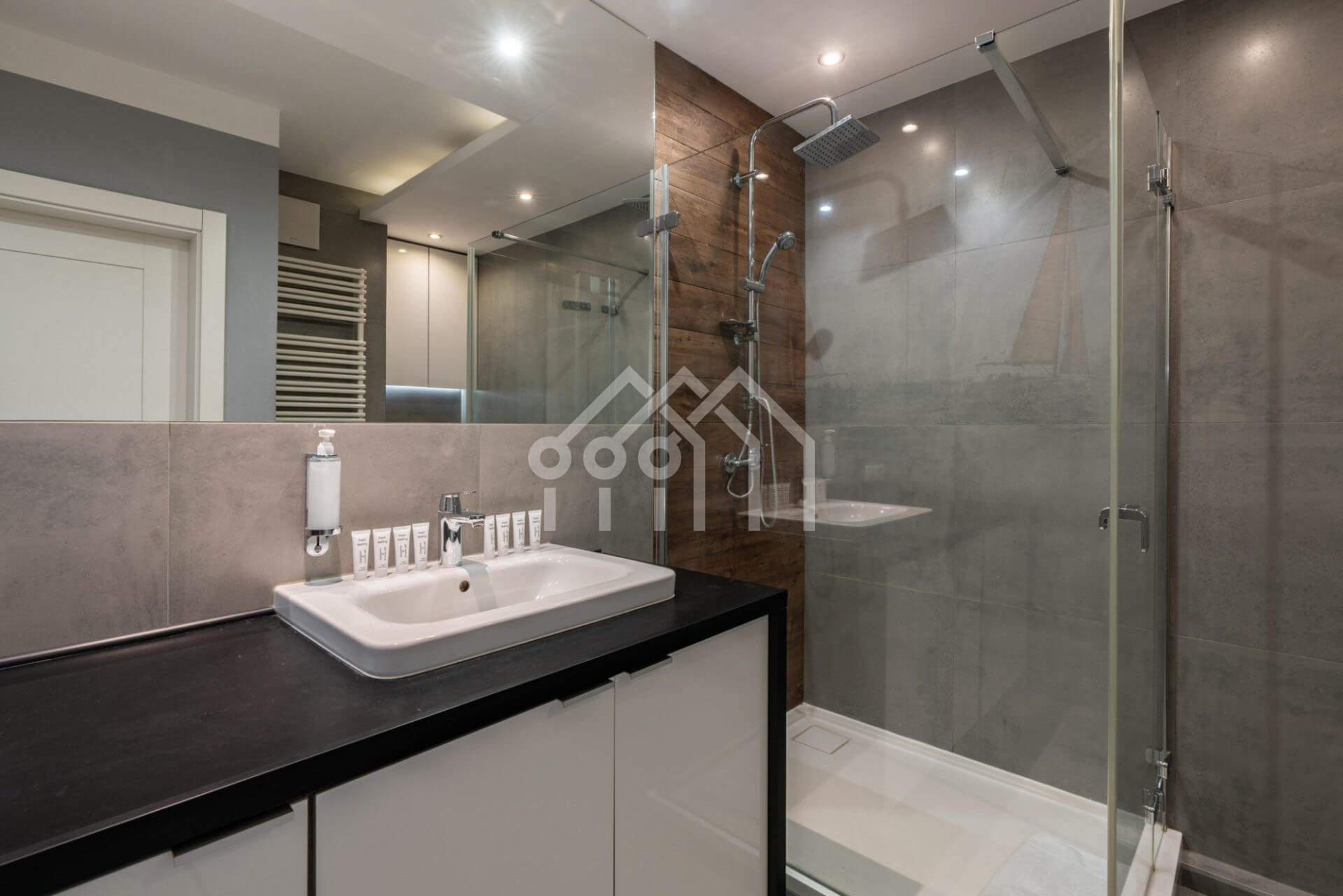 Apartament posiada dużą łazienkę z prysznicem i WC oraz osobną toaletę.