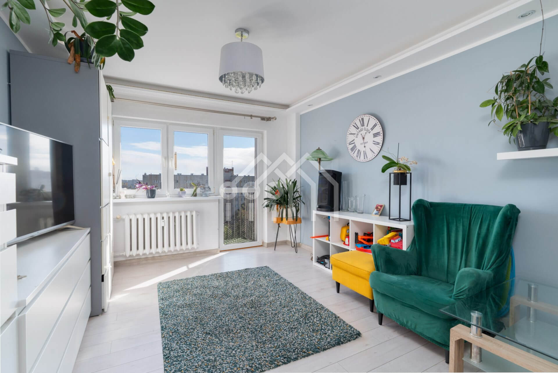 - Salon z wyjściem na balkon, przestronny i dobrze doświetlony, z widokiem na centrum miasta,
